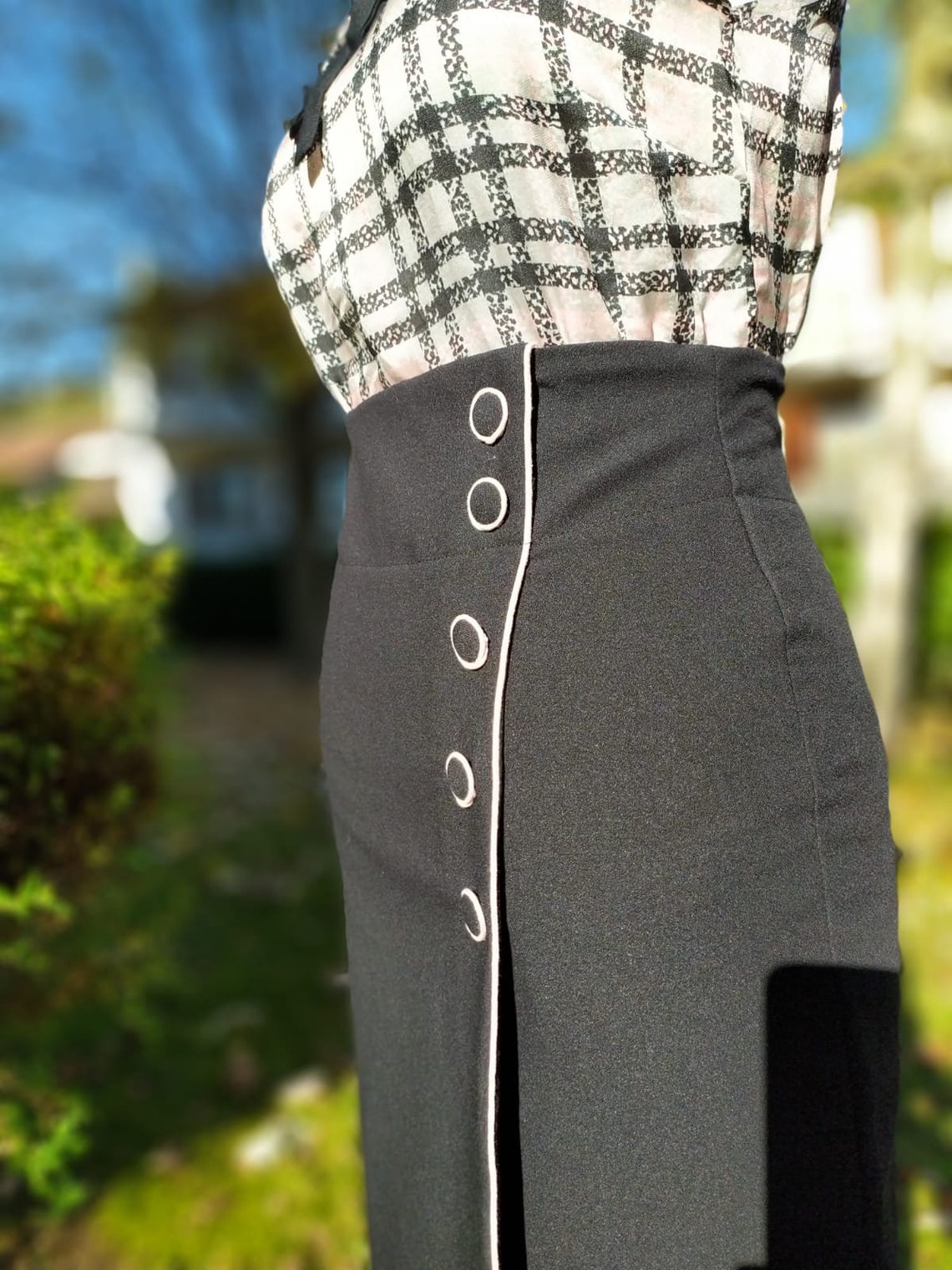 Black mini skirt, gonna a tubino, gonna a vita alta, gonna tubino, gonna tubino vita alta, gonna tubo, gonna vita alta tubino, gonne a tubo, gonne estive, gonne ragazza, gonne tubino elasticizz, minigonna a quadri, suite benedict. Due file laterali di bottoni dorati impreziosiscono la vita di questa gonna davvero sensuale. Acquista i tuoi stili preferiti. In questi ultimi anni sono tornate di gran moda le gonne a vita alta, e la scelta è davvero varia e comprende sia i modelli lisci a tubino sia le gonne plissettate.fantasie floreali, colore unico, il nero intramontabile ed elegante sono tutte scelte disponibili per mostrare sempre una silhouette femminile che esalta le curve con grazia ed eleganza. Due file laterali di bottoni dorati impreziosiscono la vita di questa gonna davvero sensuale.